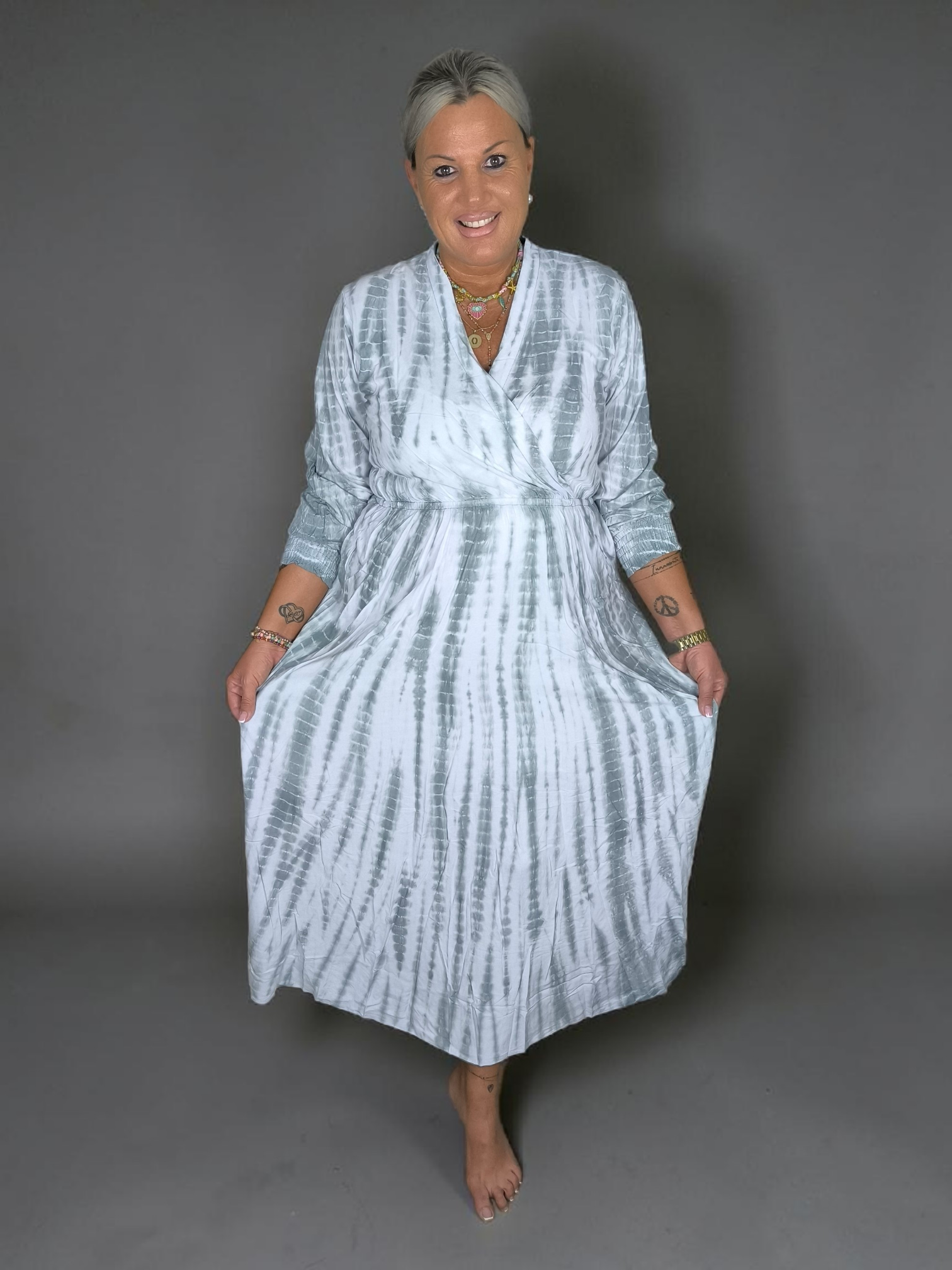 Das Kleid Coco Desert Stone ist die perfekte Mischung aus Stil und Komfort – ein echter Allrounder für jeden Anlass. Mit seiner raffinierten Wickeloptik, dem schmeichelhaften V-Ausschnitt und den langen Ärmeln setzt es elegante Akzente. Der weit schwingende Rock verleiht dir bei jedem Schritt eine fließende, feminine Silhouette.