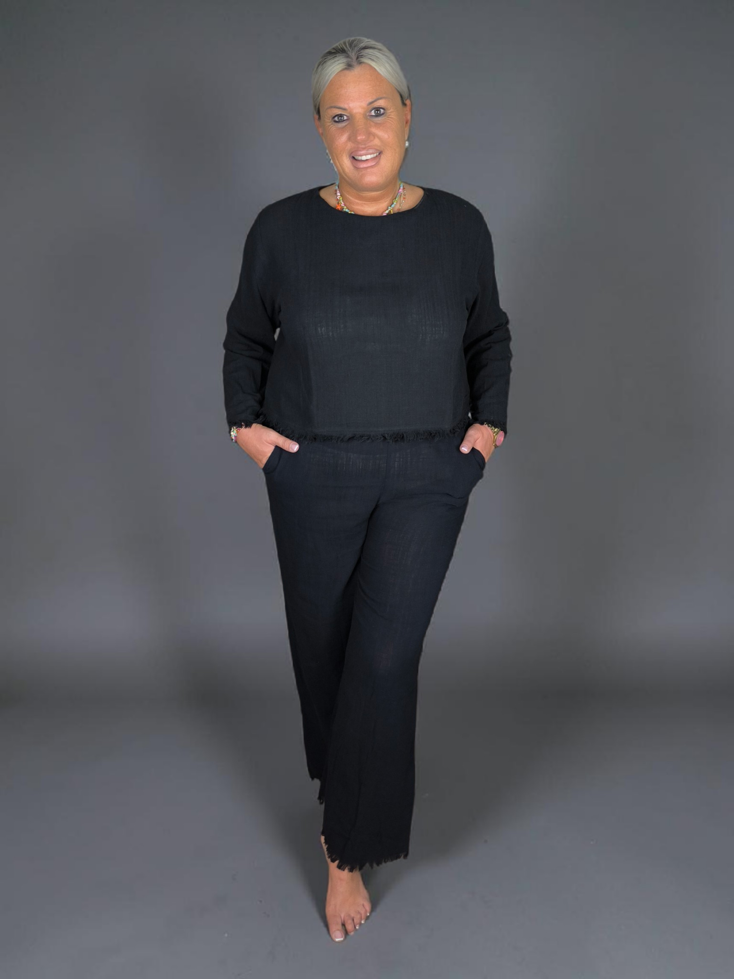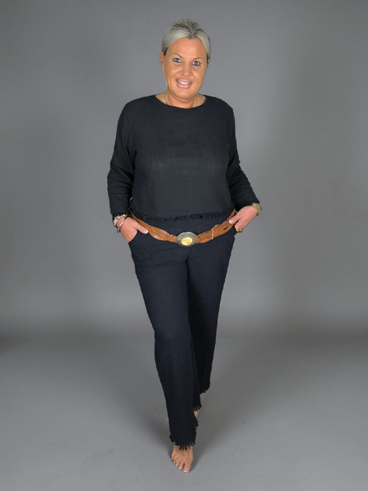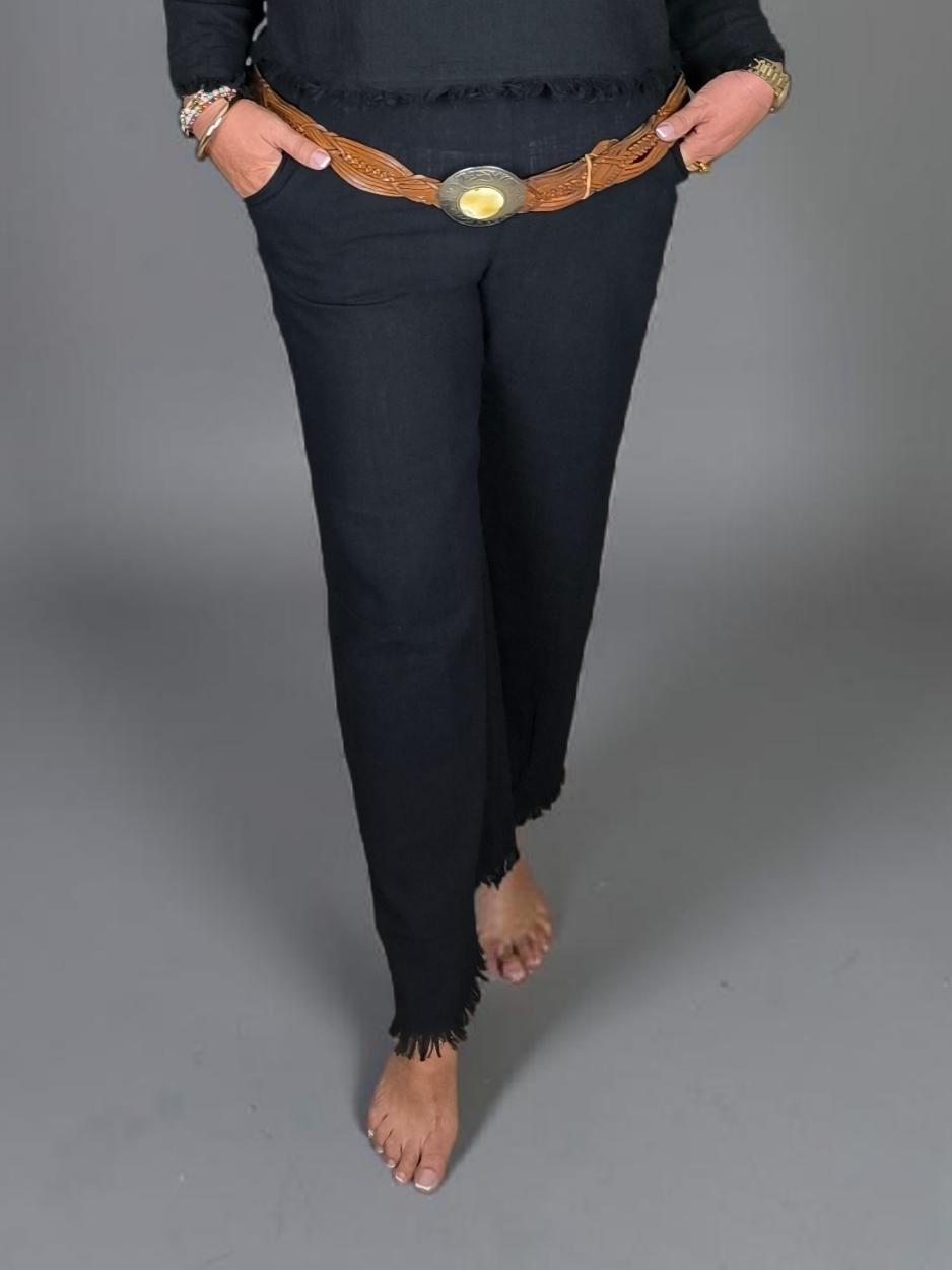 Die Maddie Pants sind ein absolutes Essential für deine Resort-Garderobe. Diese ultraleichte Hose besticht durch ihren weiten, entspannten Schnitt, der dir maximale Bewegungsfreiheit und höchsten Tragekomfort bietet. Praktische Taschen machen das Design alltagstauglich, während die verspielten Fransen-Abschlüsse für den perfekten Hauch von Boho-Charme sorgen.