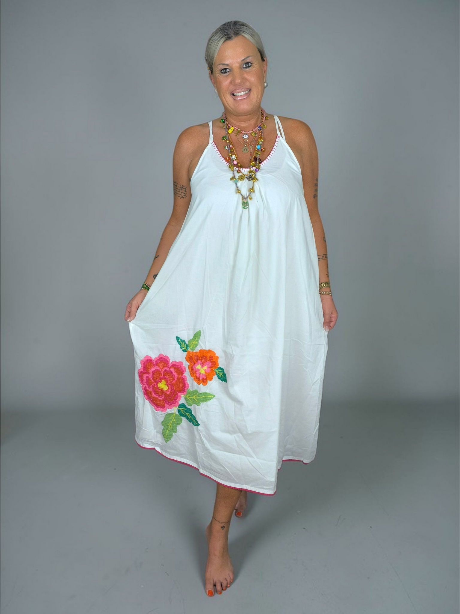 Place du Soleil shoulderband dress big flower embr.